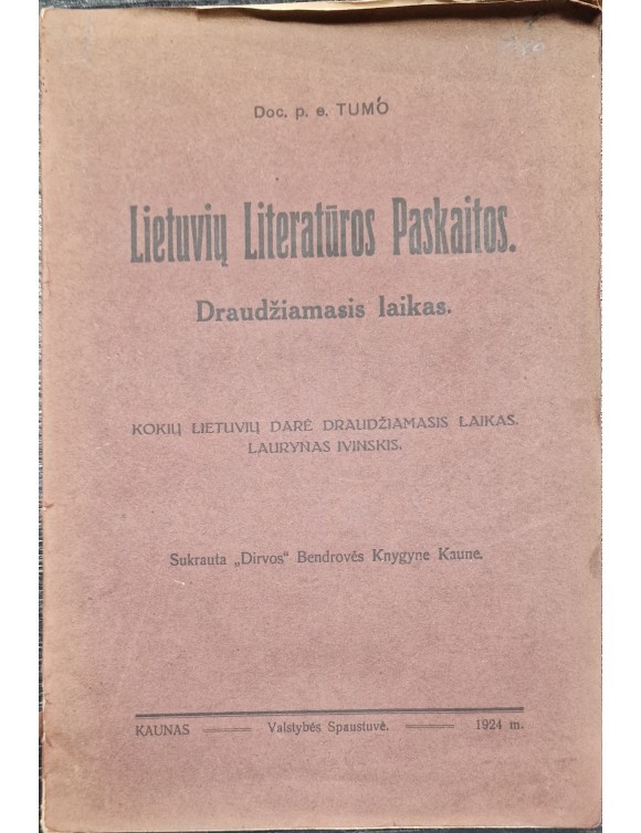 Lietuvių literatūros paskaitos. Draudžiamasis laikas. J. Tumo. Kaunas, 1924.