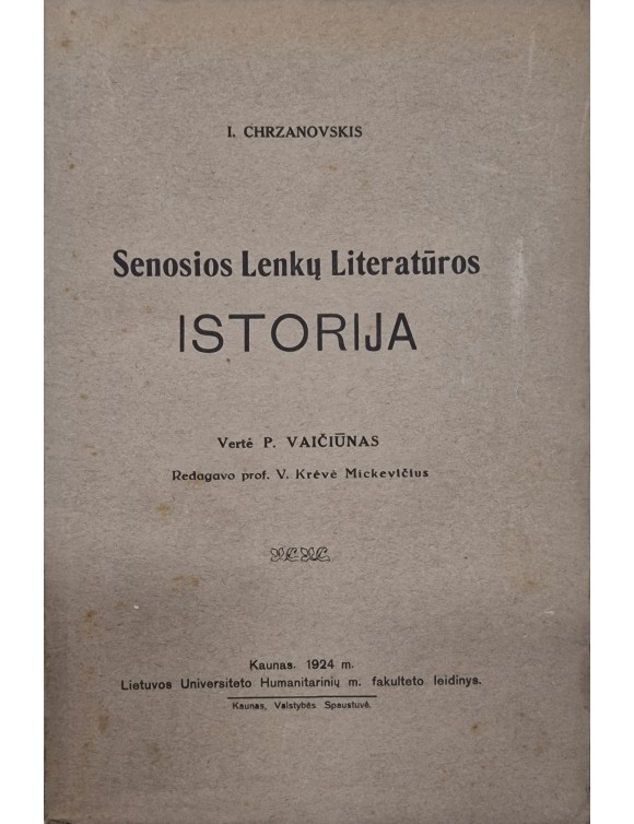 Senosios Lenkų Literatūros istorija. I. Chrzanovskis. Kaunas, 1924.