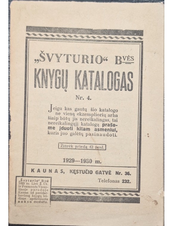 "Švyturio" Bendrovės knygų katalogas Nr.4.