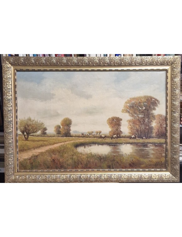 Peizažas su karvėmis. Kartonas, aliejus. 75x105 (su rėmu).
