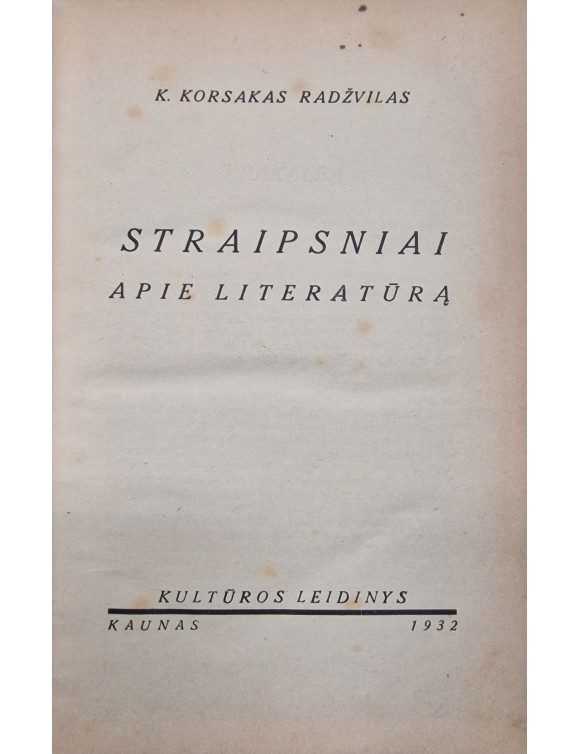 Straipsniai apie literatūrą. K. Korsakas Radžvilas. Kaunas, 1932.