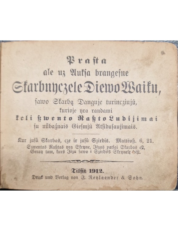 Prasta ale už auksą brangesnė Skrabnyczėlė Diewo Waiku... - Tilžė, 1912.  Labai reta knyga, geros būklės.
