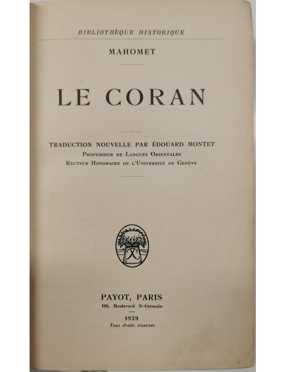 Le Coran. Mahomet. Paris, 1929.
