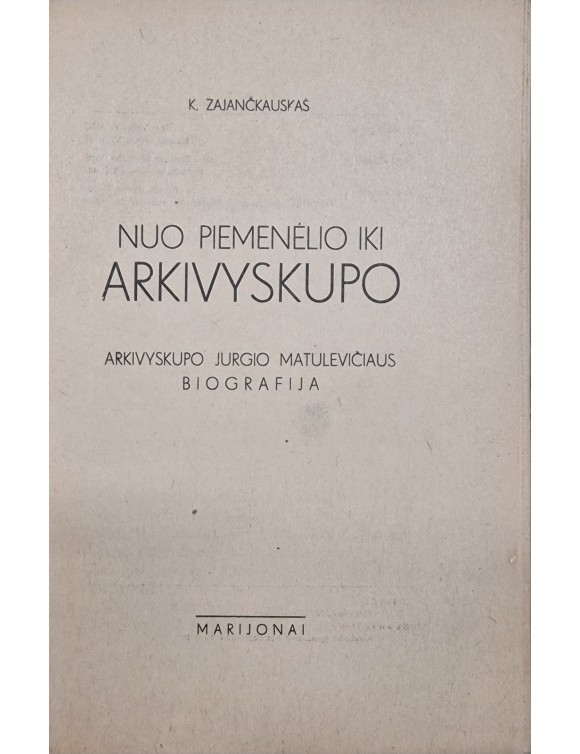 Nuo piemenėlio iki arkivyskupo. Arkivyskupo Jurgio Matulevičiaus biografija. K. Zajančkauskas. Marijampolė, 1939.