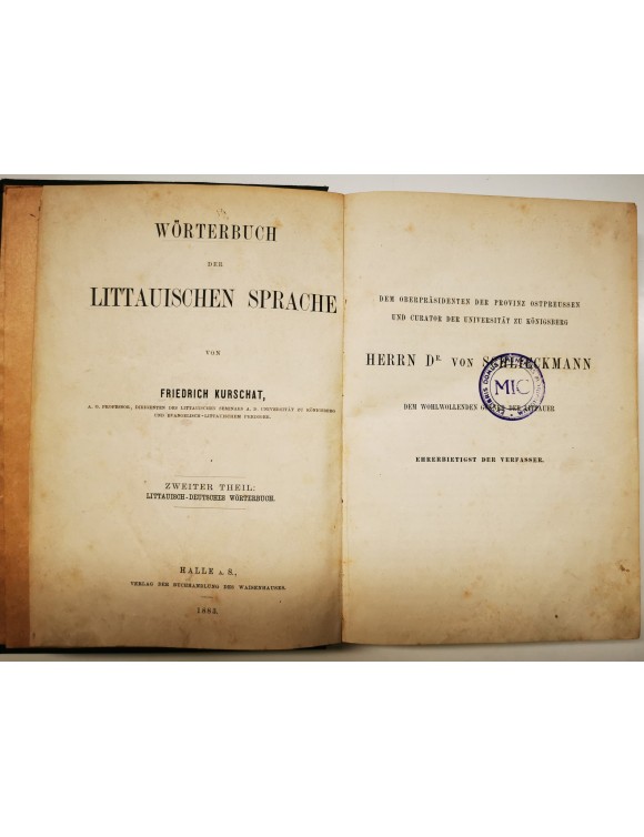 Worterbuch der Littauischen sprache. F. Kurschat. D.2. Halle, 1883. 529 psl.