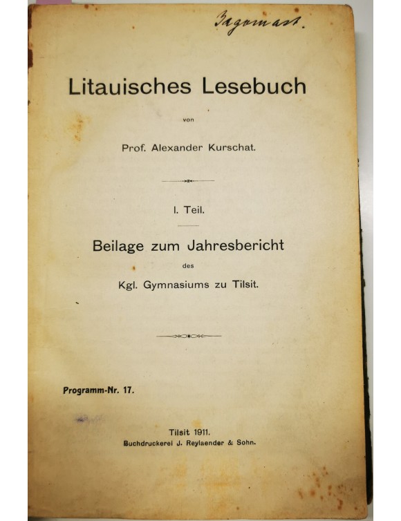 Litauisches Lesebuch. A. Kurschat. T.1-3. Tilžė, 1911-1912-1913.