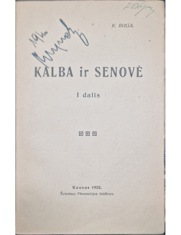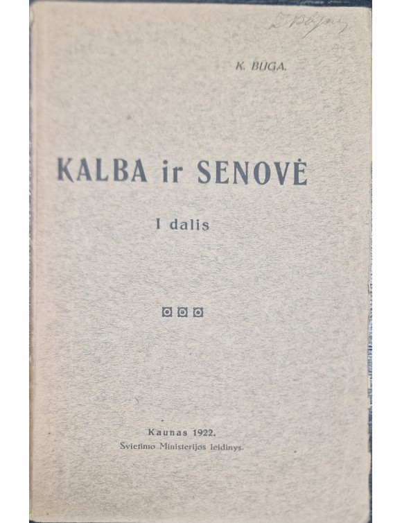 Kalba ir senovė. K. Būga. Kaunas, 1922.