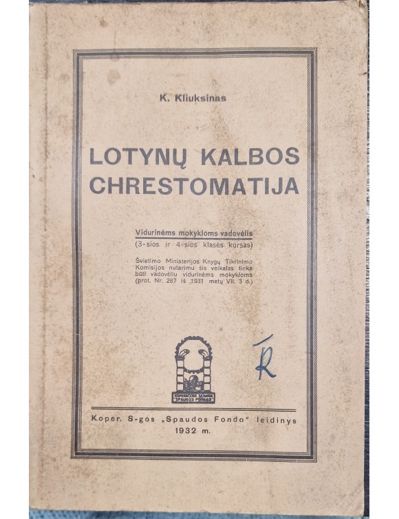 Lotynų kalbos chrestomatija. K. Kliuksinas. Kaunas, 1932.