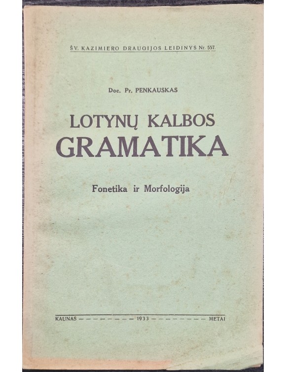 Lotynų kalbos gramatika. Fonetika ir Morfologija. Pr. Penkauskas. Kaunas, 1933.
