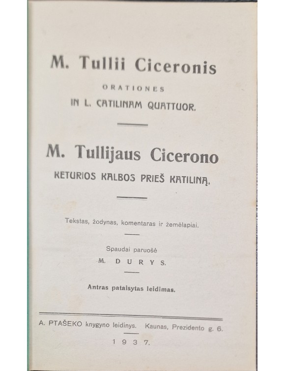 M. Tulijaus Cicerono keturios kalbos prieš Katiliną. Kaunas, 1937.