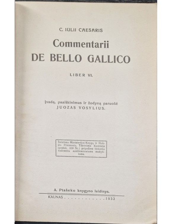 Commentarii de Bello Gallico. C. Iulii Caesaris. Kaunas, 1932.