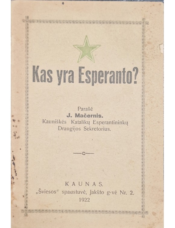 Kas yra Esperanto? J. Mačernis. Kaunas, 1922.