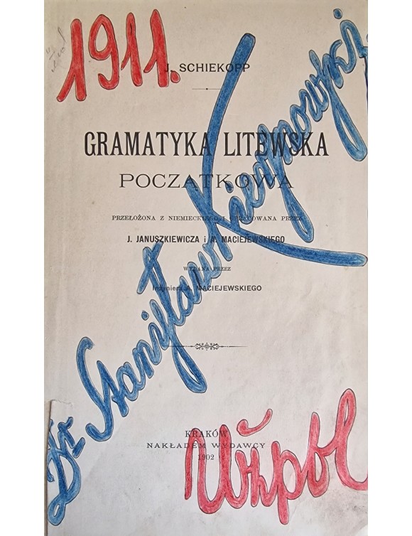 Gramatyka Litewska początkowa. J. Schiekopp. Krakow, 1902.