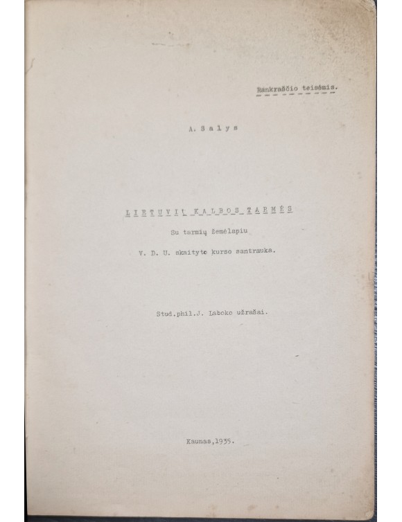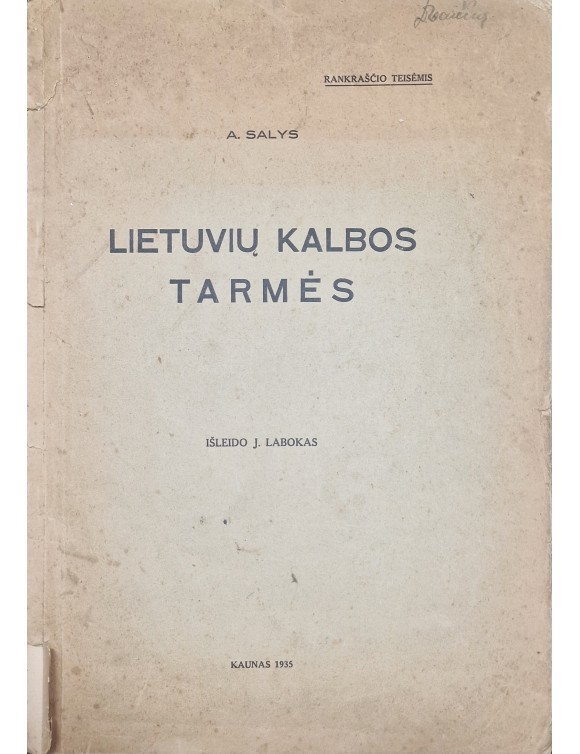 Lietuvių kalbos tarmės. A. Salys. Kaunas, 1935.