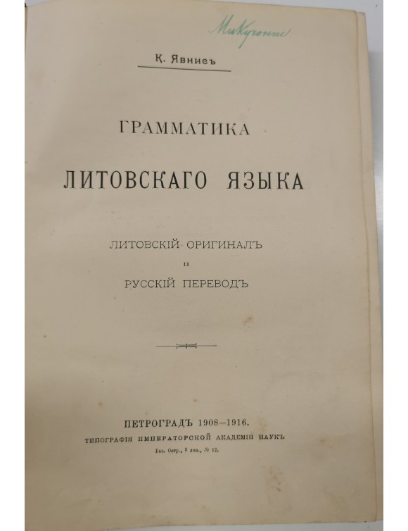 Грамматика литовскаго языка. К. Явнисъ. Петроградъ, 1908-1916.