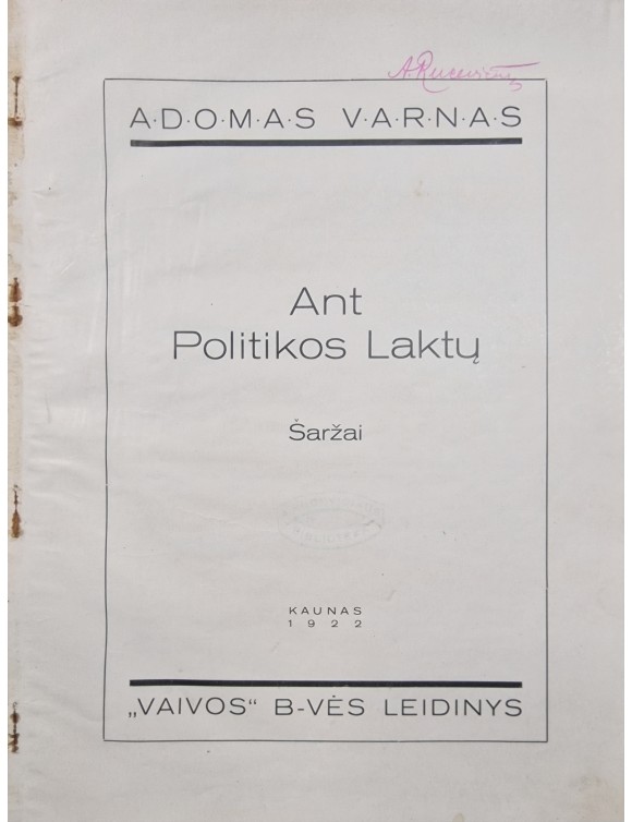 Ant politikos laktų. Šaržai. A. Varnas. Kaunas, 1922. Su A. Rucevičiaus autografu.