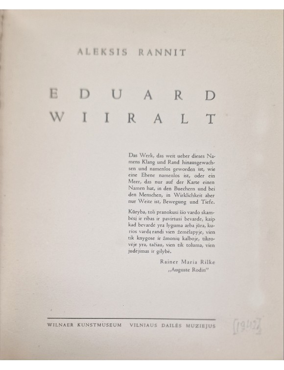Eduard Wiiralt. A. Rannit. Vilniaus dailės muziejus, [1942]. Lygiagretus tekstas vokiečių ir lietuvių kalba.