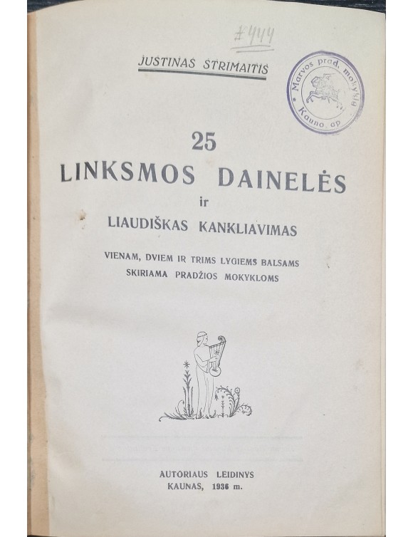 25 linksmos dainelės ir liaudiškas kankliavimas. J. Strimaitis. Kaunas, 1936.