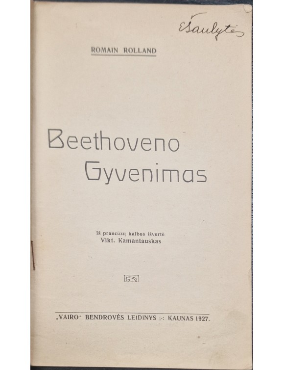 Bethoveno gyvenimas. R. Rolland. Kaunas, 1927.