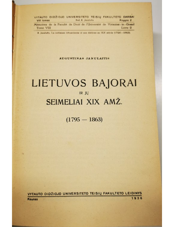 Lietuvos bajorai ir jų seimeliai XIX amž. (1795- 1863). A. Janulaitis. Kaunas, 1936. 629 psl.