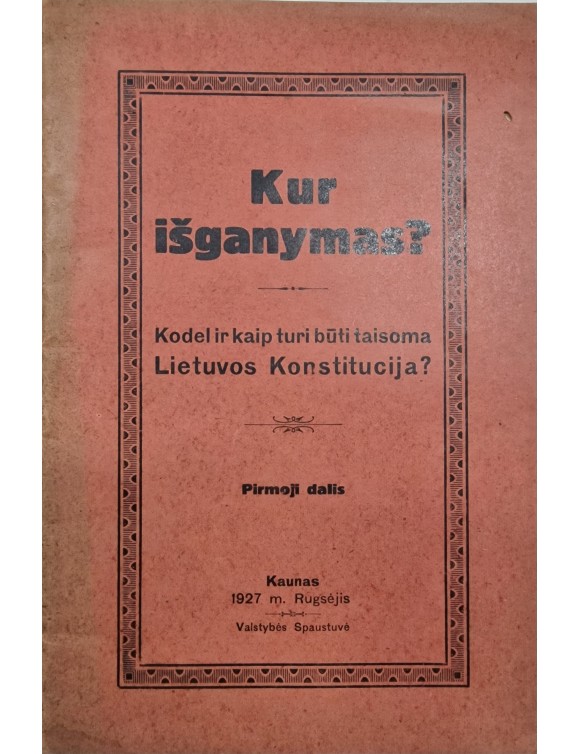 Kur išganymas? Kodėl ir kaip turi būti taisoma Lietuvos Konstitucija? D.1-2. Kaunas, 1927.