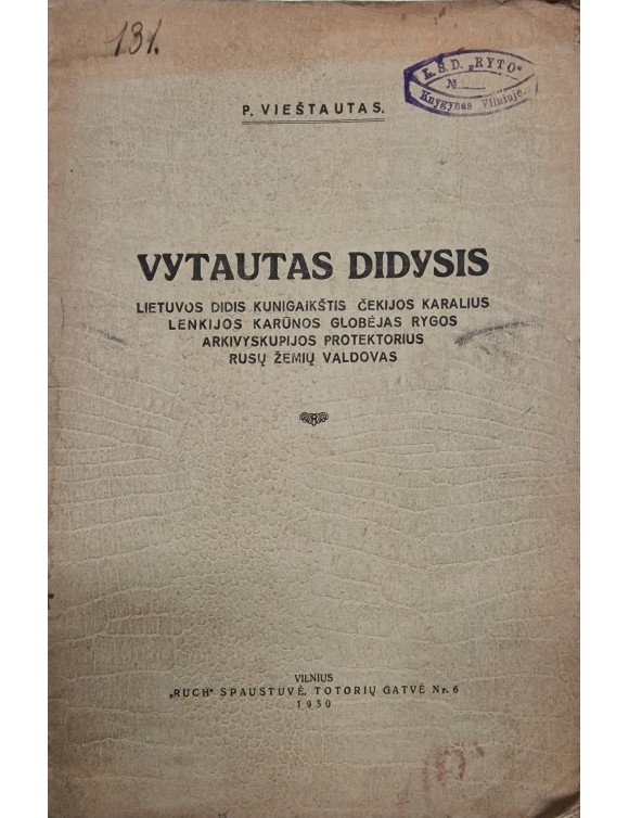 Vytautas Didysis. P. Vieštautas. Vilnius, 1930.