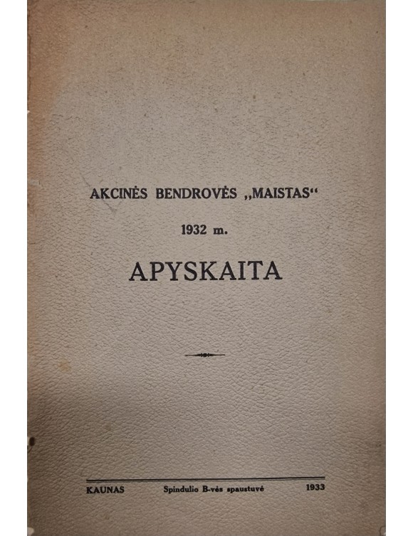 Akcinės bendrovės "Maistas" 1932 m. apyskaita. Kaunas, 1933.