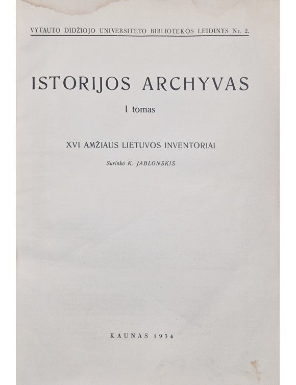 Istorijos archyvas. XVI amžiaus Lietuvos inventoriai. T.1. Sur. K. Jablonskis. Kaunas, 1934.