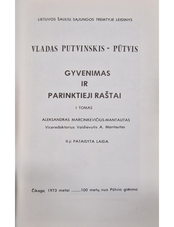 Gyvenimas ir parinktieji raštai. V. Putvinskis- Pūtvis. Čikaga, 1973.