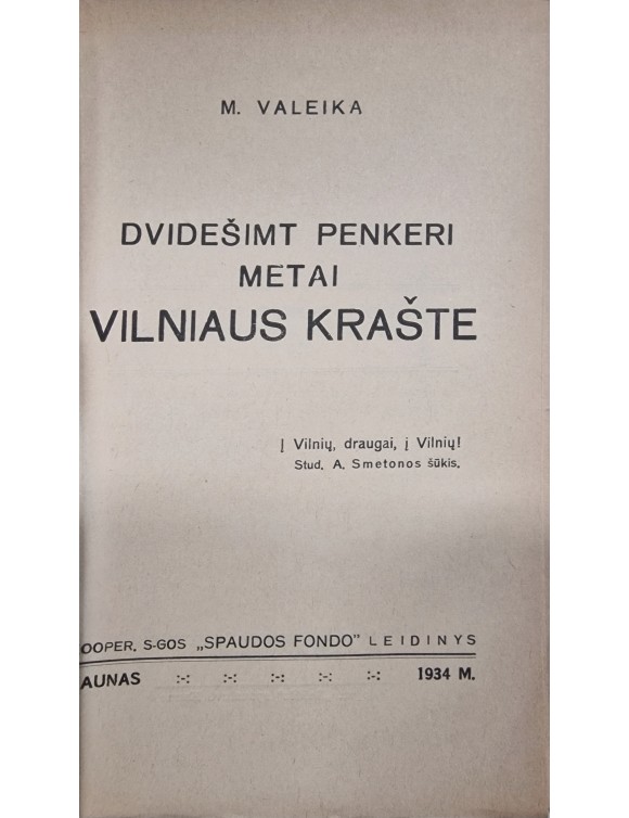 25 metai Vilniaus krašte. M. Valeika. Kaunas, 1934.