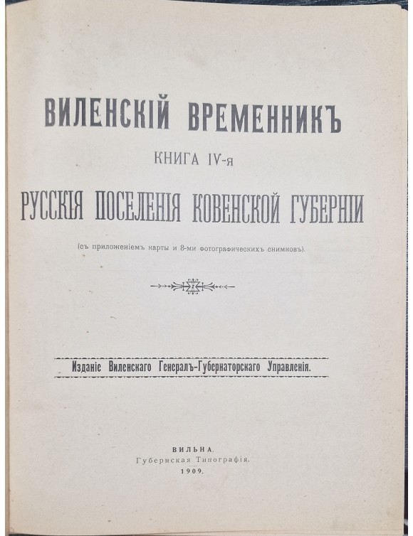 Виленский временник книга IV- я русския поселения Ковенской Губерни. Вильна, 1909. Su spalvotu žemėlapiu. Naujas kietas įrišimas.