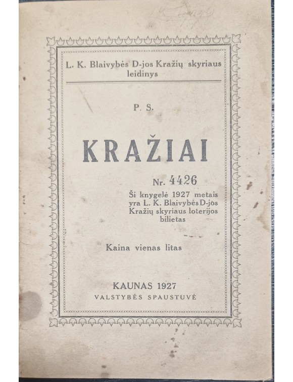 Kražiai. Kaunas, 1927.
