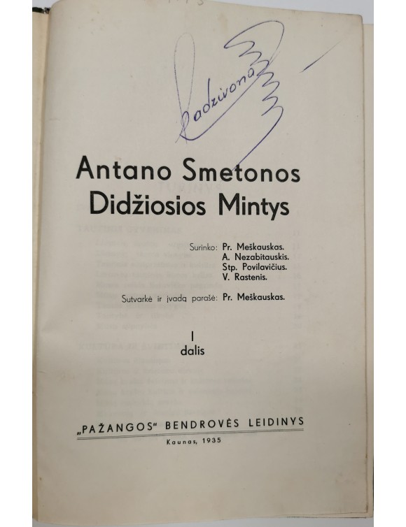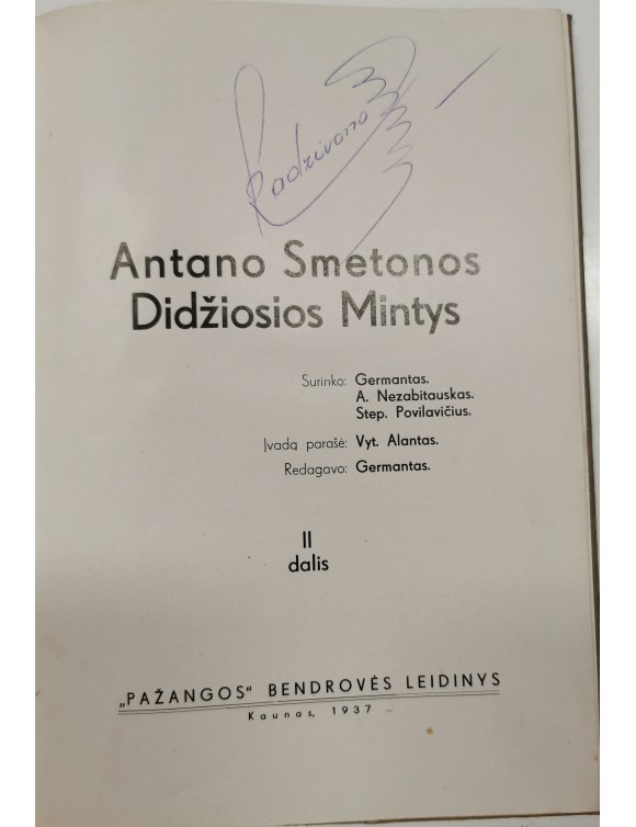 Antano Smetonos didžiosios mintys. D.1-2. Kaunas, 1935-1937.