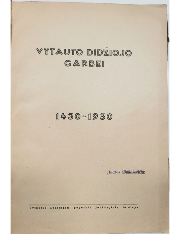Vytauto Didžiojo garbei 1430-1930. Jubiliejinis leidinys. Kaunas, 1930.