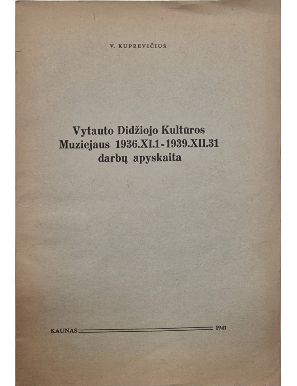 Vytauto Didžiojo Kultūros Muziejaus 1936.XI.1 - 1939.XII.31 darbų apyskaita. V. Kuprevičius. Kaunas, 1941.