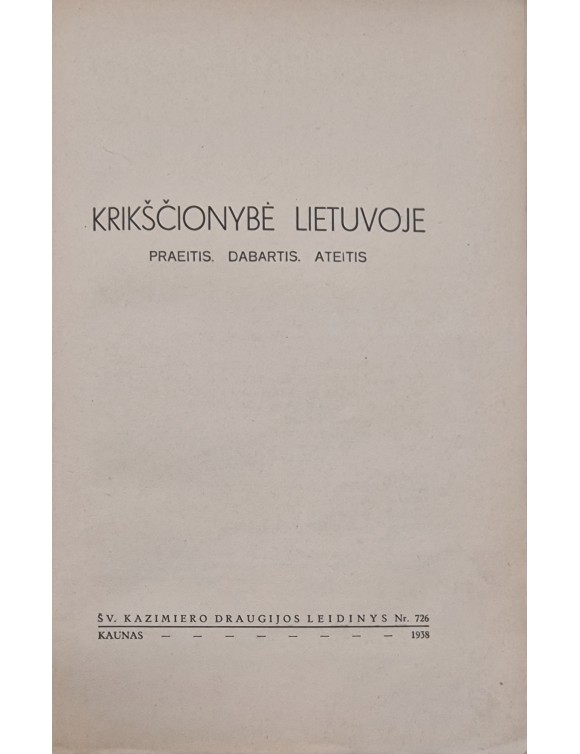 Krikščionybė Lietuvoje. Praeitis. Dabartis. Ateitis. Kaunas, 1938.