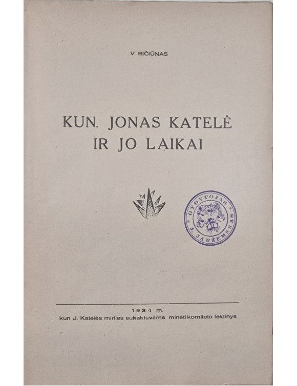 Kun. Jonas Katelė ir jo laikai. V. Bičiūnas. Kaunas, 1934.