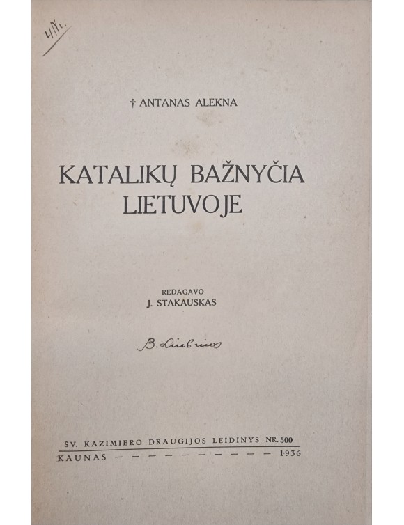 Katalikų bažnyčia Lietuvoje. A. Alekna. Kaunas, 1936.
