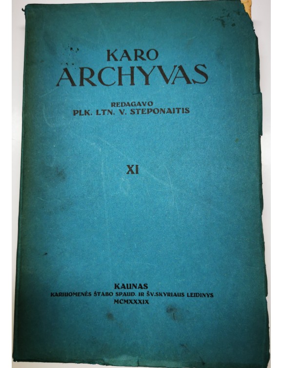 Karo archyvas. T.11. Kaunas, 1939. 313 psl.