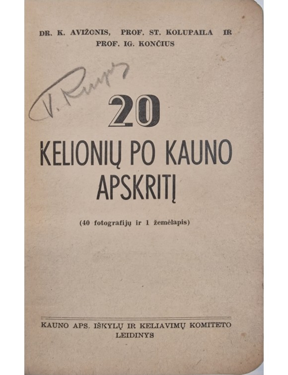 20 kelionių po Kauno apskritį. K. Avižonis, St. Kolupaila ir I. Končius. Kaunas, 1937. Be žemėlapio.