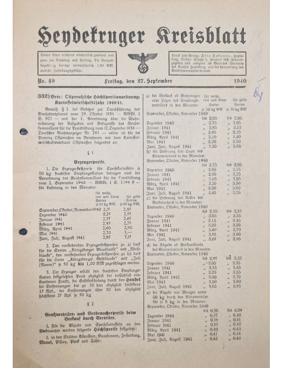Heydekruger Kreisblatt. 1940 m. Nr.49.