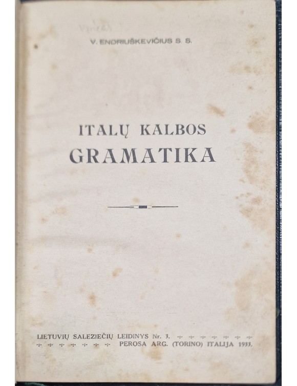 Italų kalbos gramatika. V. Endriuškevičius. Italija, 1933.