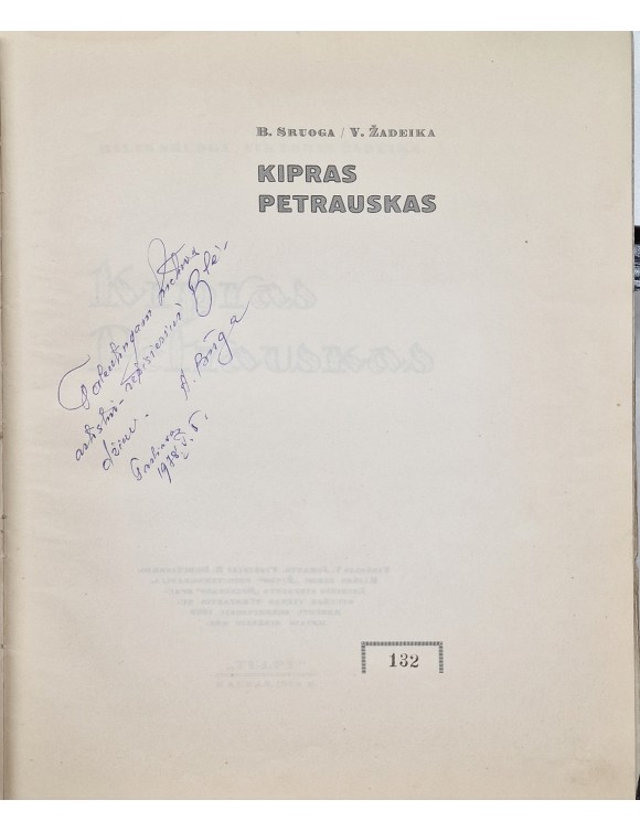 Kipras Petrauskas. B. Sruoga, V. Žadeika. Kaunas, 1929.