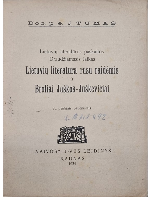 Lietuvių literatūra rusų raidėmis ir broliai Juškos-Juškevičiai.J. Tumas. Kaunas, 1924.