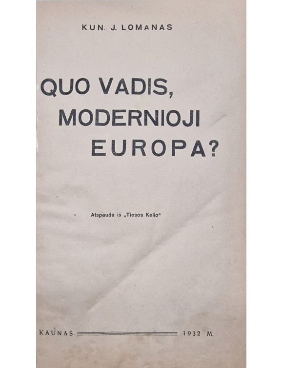 Quo vadis, modernioji Europa? J. Lomanas. Kaunas, 1932.