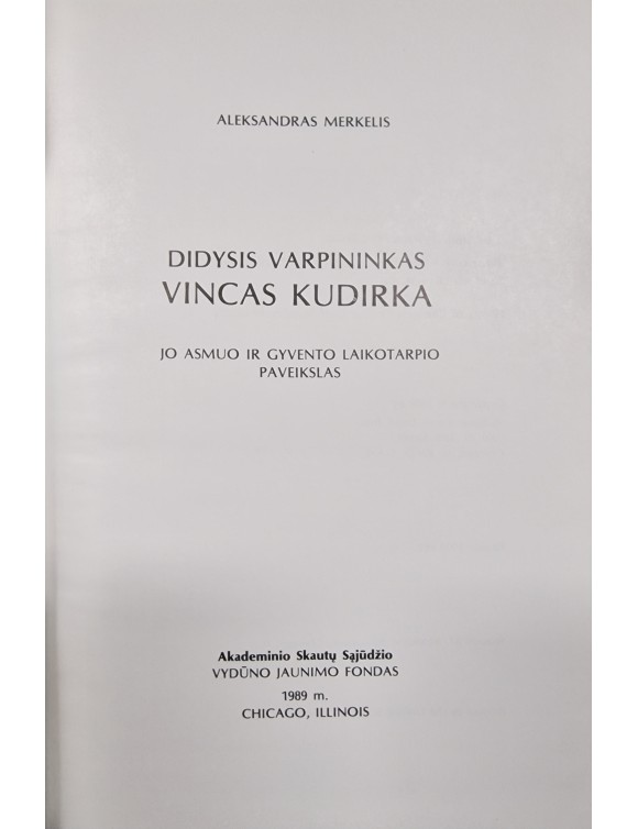 Didysis varpininkas Vincas Kudirka. A. Merkelis. Chicago, 1989.