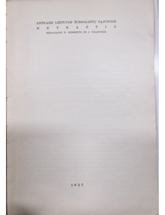 Lietuvos žurnalistų sąjungos metraštis. T.2. Kaunas, 1937.