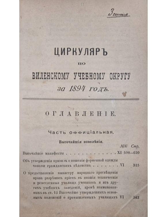 Циркуляръ по Виленскому учебному округу за 1894 годъ