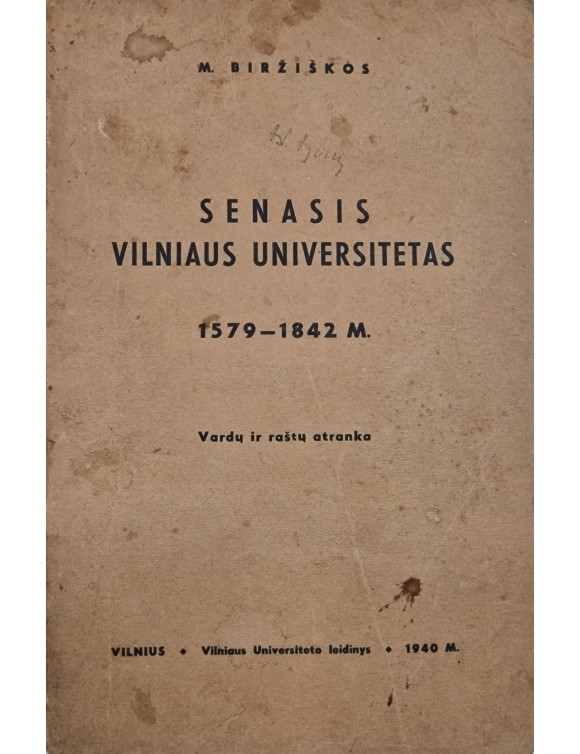 Senasis Vilniaus universitetas 1579-1842 m. M. Biržiškos. Vilnius, 1940.