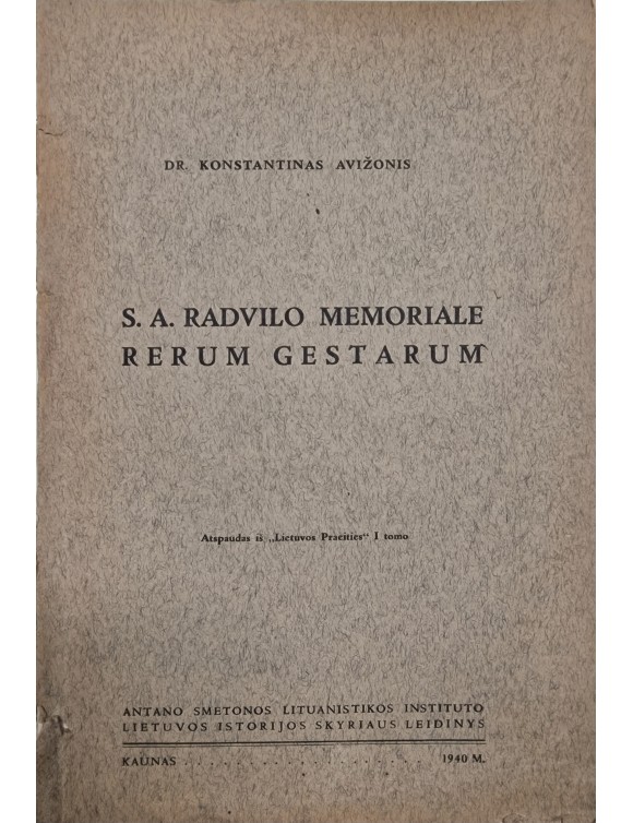 S. A. Radvilo memoriale rerum gestarum. K. Avižonis. Kaunas, 1940.